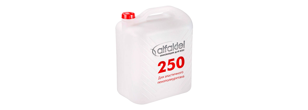 АЛЬФАКЛЕЙ 250 предназначен для склеивания эластичного ППУ, в том числе поролона, латекса, фетра, войлока, древесины, кожи, фанеры и других материалов для создания прочного термостойкого водостойкого клеевого шва.